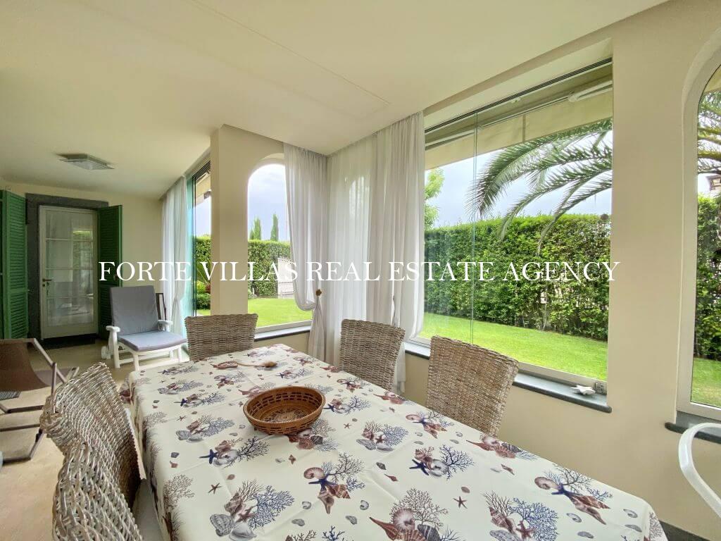 Beautiful semi-detached villa for rent in Forte dei Marmi 500-600 m from Tuscany sea with beautiful large garden.