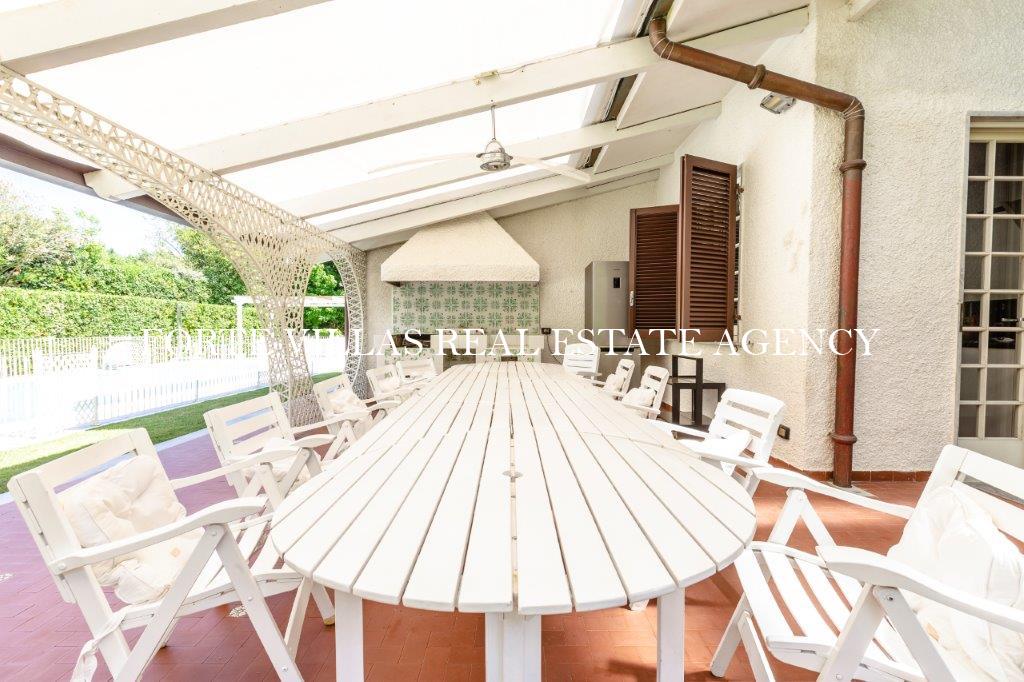 Beautiful two-storey villa of 450 m2 with swimming pool and well-kept garden for rent in the prestigious area of Roma Imperiale in Forte dei Marmi, 700-800 m from the Versilia sea.