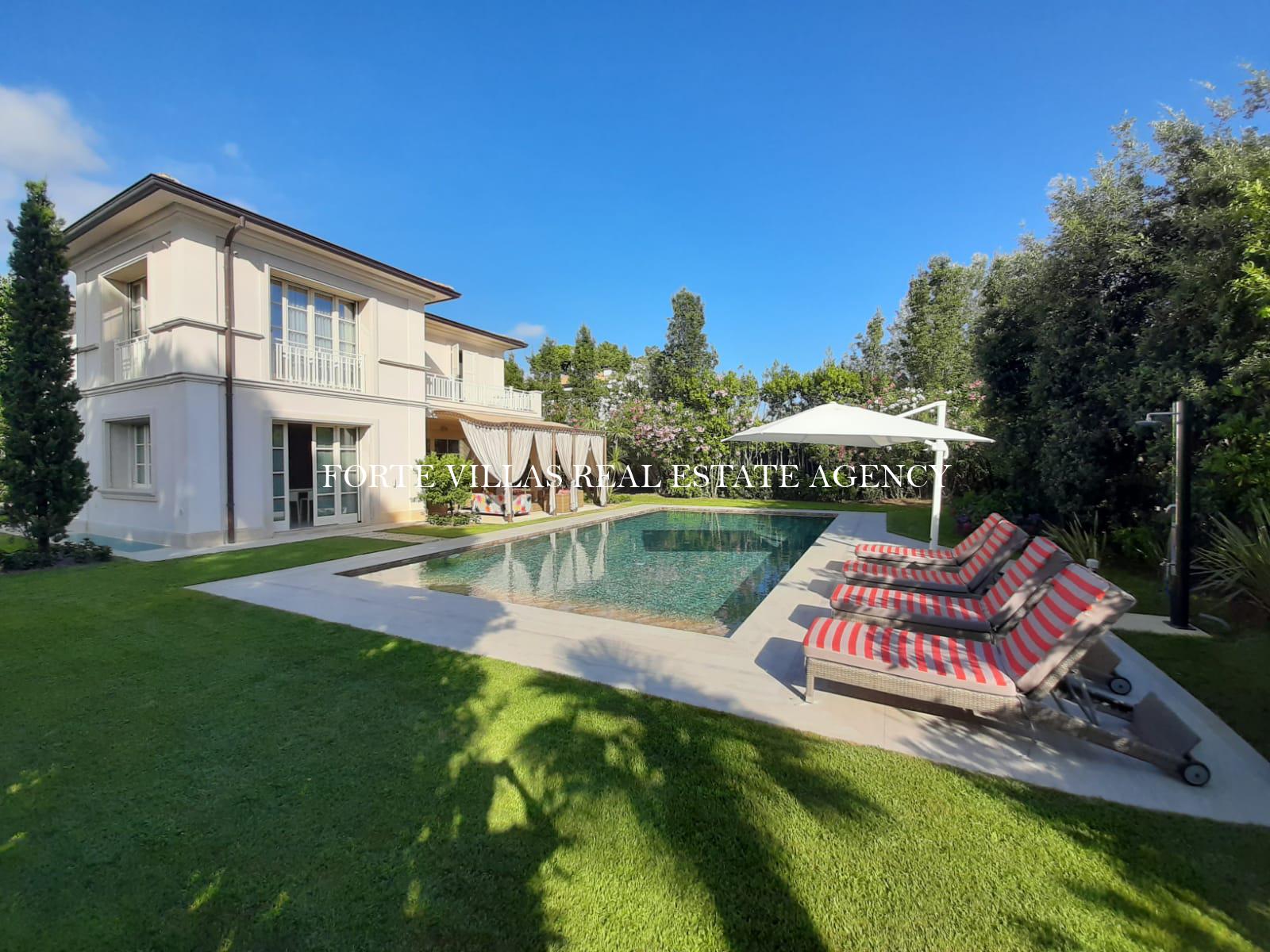 Wonderful newly built villa for rent in Forte dei Marmi with heated pool and a well-kept garden, just 400-450 m from the sea.