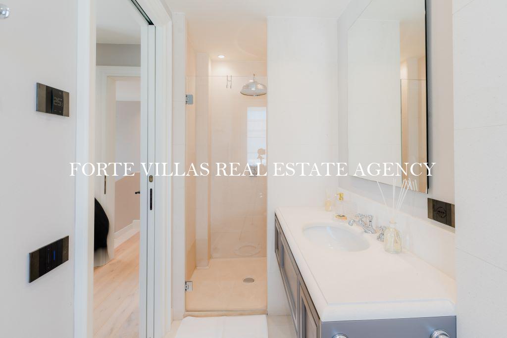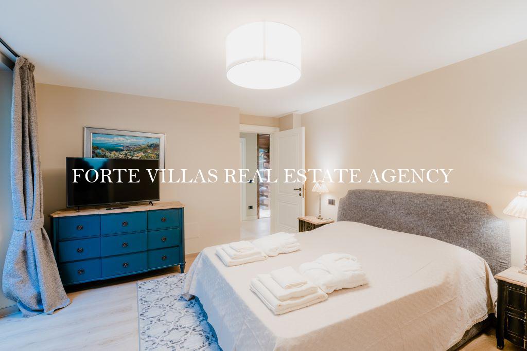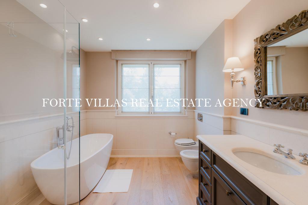 Al piano superiore è presente la zona notte, che ospita la master bedroom con due bagni e due cabine armadio en suite, due camere da letto matrimoniali con bagno privato e una splendida terrazza con vista sull'incantevole giardino.