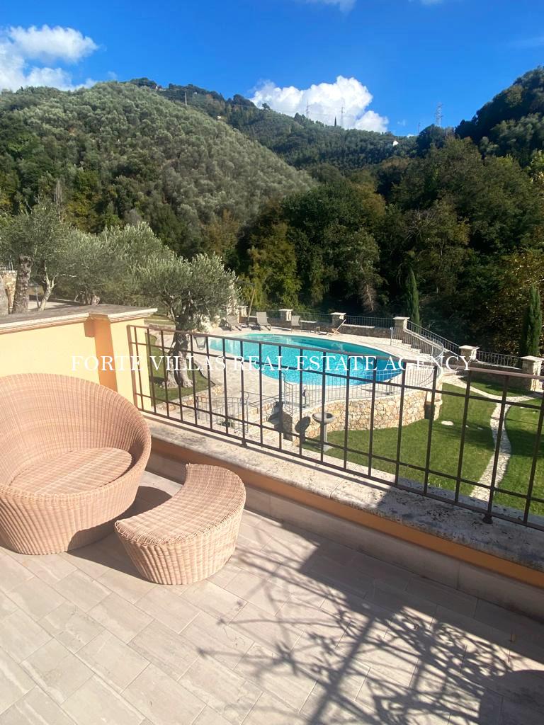 Bellissima Villa a Valdicastello a soli 5 minuti dal centro di Pietrasanta, con piscina, meravigliose terrazze con vista e grande terreno di 9.000 m.