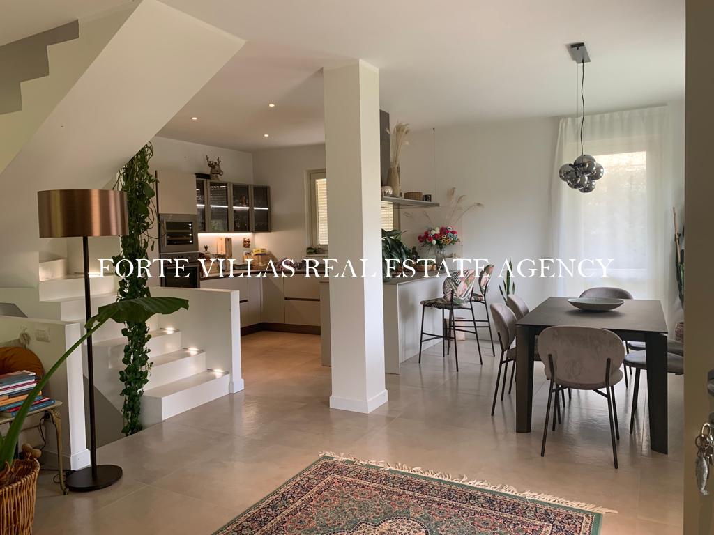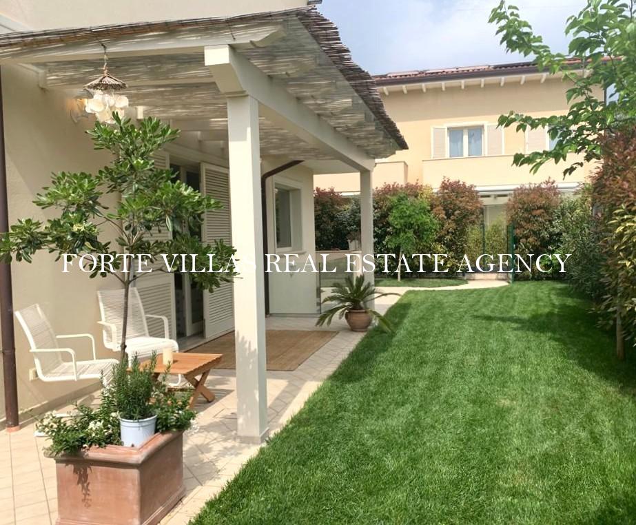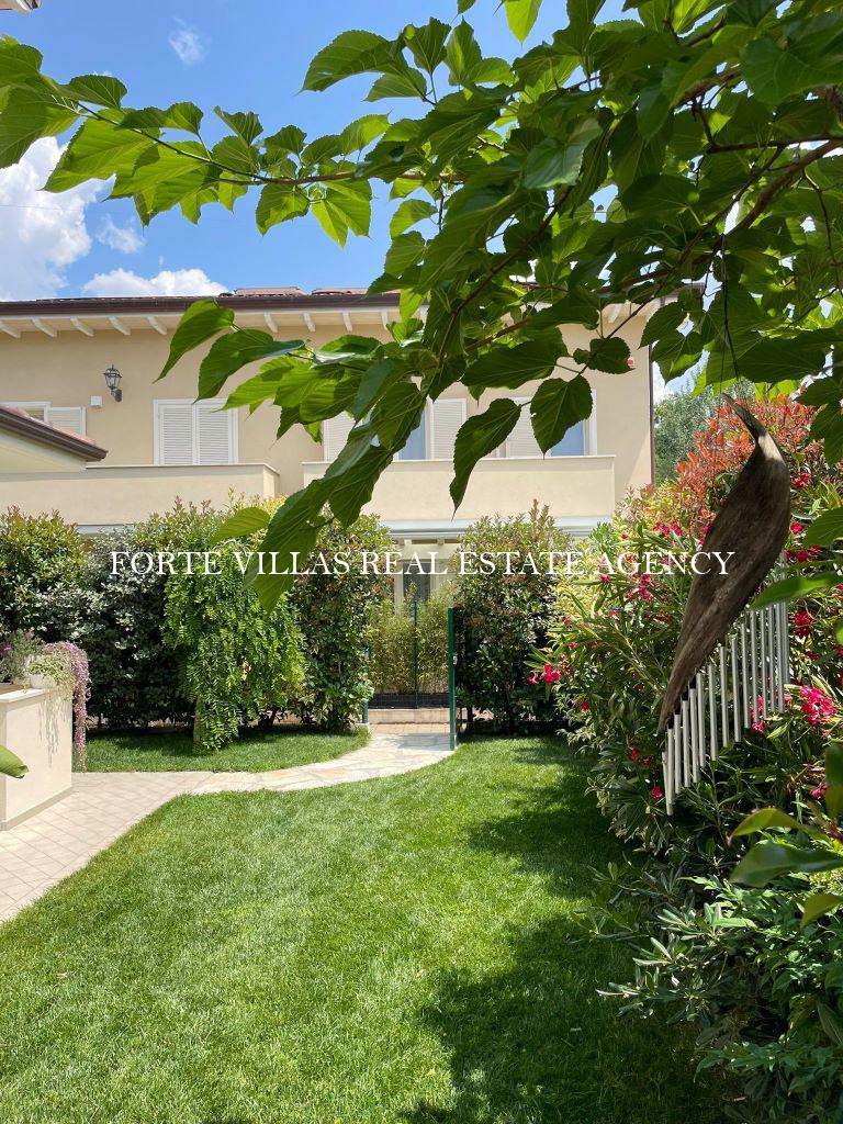 Meravigliosa bifamiliare con giardino di recente costruzione, situata in zona tranquilla a circa 900 m dal mare di Forte dei Marmi.