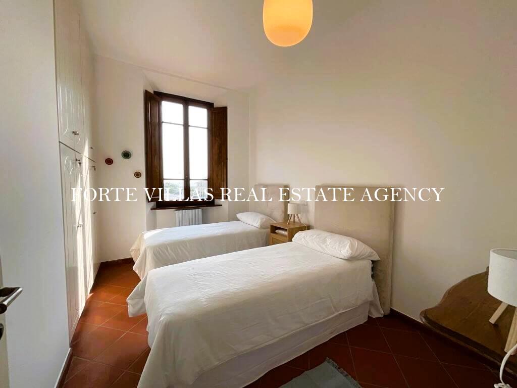 Appartamento al primo piano con vista mare situato nel cuore di Forte dei Marmi. 2 camere da letto e 2 bagni, splendida terrazza estiva e posto auto privato.