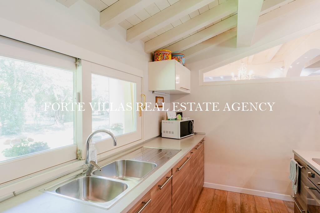 La villa principale è composta da ampio soggiorno, zona pranzo, cucina molto grande, 1 suite con guardaroba e bagno, 2 camere da letto, 3 bagni, zona TV, bellissima scala e soffitti alti, magnifica terrazza.